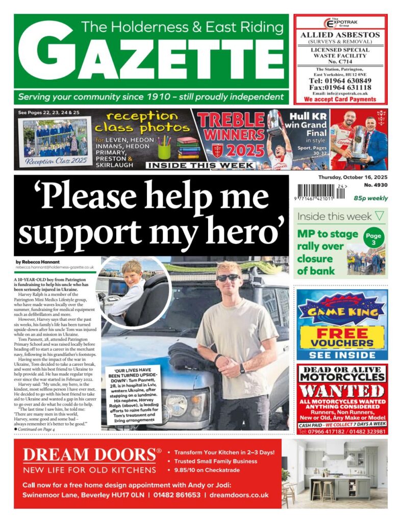 You can read about Harvey Ralph from ‘Patrington Mini Medics’ fundraising for his Uncle Tom injured in Ukraine.