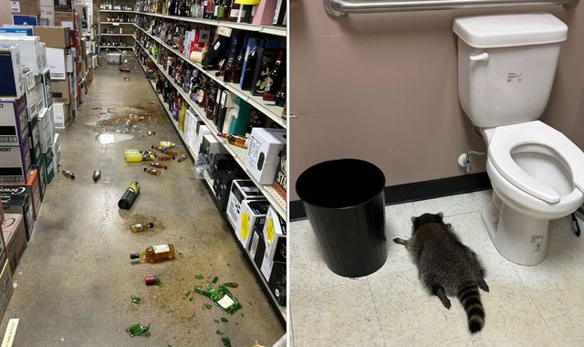 Spirit animal: Raccoon gets drunk as a skunk in a booze store – and sleeps off hangover in the toilet