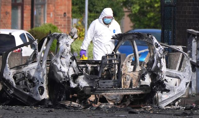 A senior officer said the attack outside Dunmurry police station, southwest of Belfast city centre, at around 10.50pm on Saturday, is being